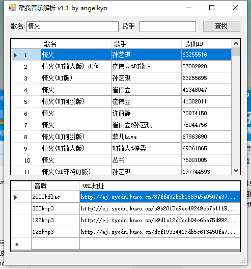软件本体是酷我音乐解析v1.1.exe,文件夹中自带了软件作者自制的播放器:mpv.exe,下载时用到的程序是ffmpeg.exe。